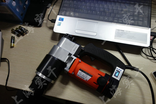 2、將控制儀的扭矩旋鈕調到所需扭矩值,將主機正反開關撥到正轉位置,把扳手套筒套在螺紋連接件的六方上。